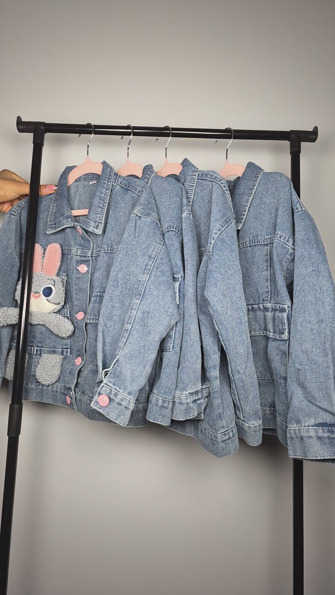 Ajoutez une touche mignonne et élégante à la tenue de votre enfant avec cette veste en jean tendance , ornée d'un adorable sac en peluche en forme de lapin .